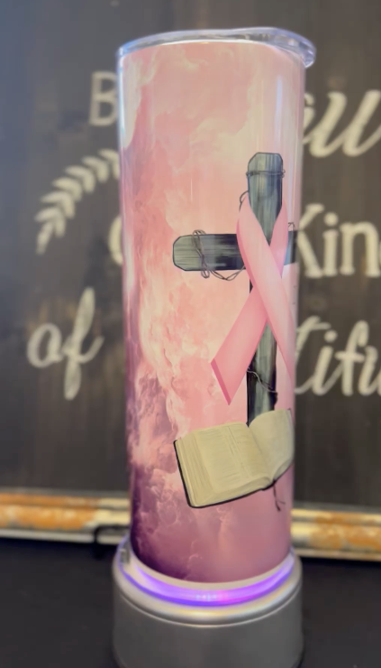 Breast Cancer Ribbon with Cross & Bible 20oz Skinny Straight TumblerRegular price $24.99 USDRegular priceUnit price per-